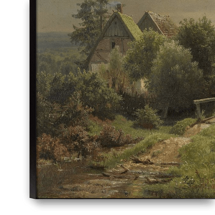 Achenbach also travelled to Scandinavia several times. In the Netherlands, his wooded Norwegian hilly landscapes with wooden houses are considered particularly picturesque. The hilly landscape in Rijksmuseum Twenthe clearly shows what Achenbach's oeuvre is all about: namely the dynamics of grand and unspoilt nature, such as the changing cloudscapes and the far-reaching landscape.
