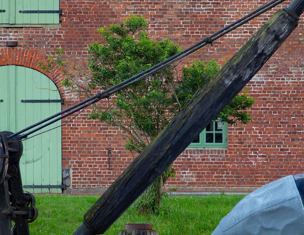 Old sea-barrel crane in the harbour of Tönning, Germany