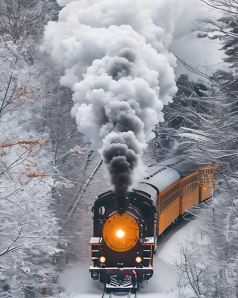 Buy this landscape artwork Historic train in the winter forest by fernlichtsicht on canvas, ArtFrame, poster and wallpaper, printed on demand in high quality.