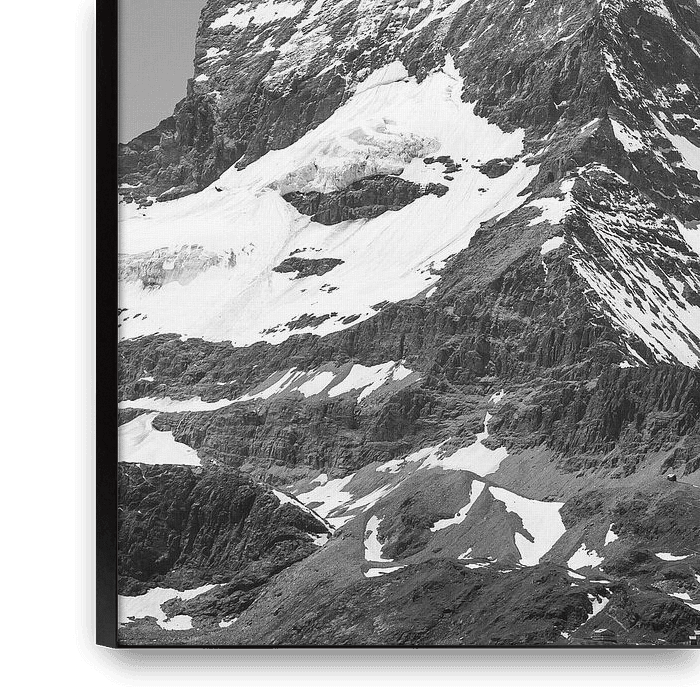 Hörnligraat Matterhorn black and white. A vertical photo of the Matterhorn above Zermatt in the Alps of Switzerland. The striking ridge in the middle is the Hörnligraat. This route is chosen as a favourite by mountaineers.