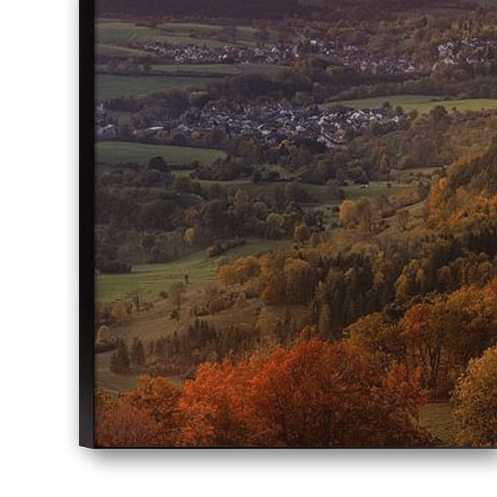 Buy this landscape artwork Hohenzollern Castle in beautiful autumn colours at sunset by Voss photography on canvas, ArtFrame, poster and wallpaper, printed on demand in high quality.