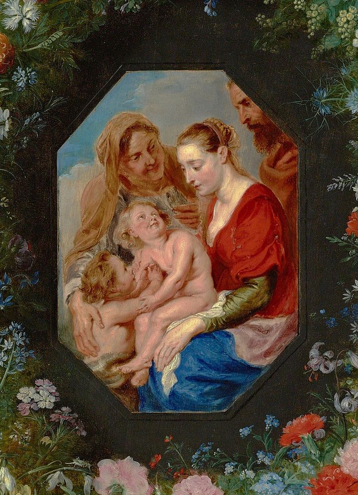 Holy Family with a Garland of Flowers, Jan Brueghel the Elder (1620)