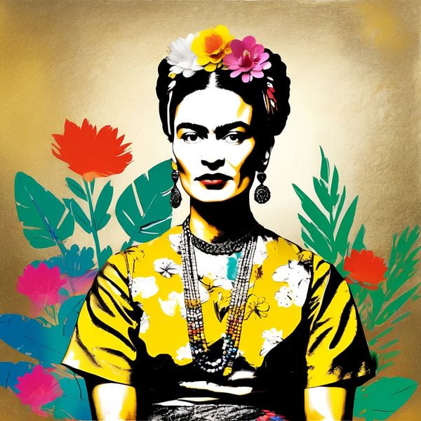Buy this painting Homage to Frida Gold - Flora by Samuel Richter as a reproduction on canvas, ArtFrame, poster and wallpaper, printed on demand in high quality.