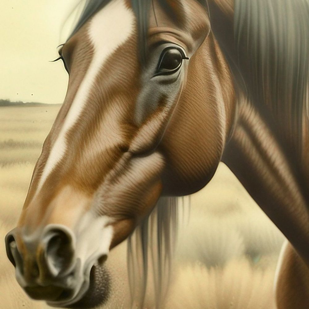 In the captivating horse painting, the artist captures the timeless beauty and noble spirit of the equine world. The magnificent horse, portrayed in all its splendor, stands proudly against a backdrop of rolling hills and dappled sunlight.