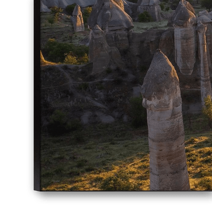 Bring the magic of travel into your home with this enchanting wall decoration of Cappadocia. In the picture, dozens of colourful hot air balloons float at sunrise over Turkey's fairytale landscape. The famous fairy chimneys, unique rock formations and warm colours of the morning sun combine to create a dreamy and unforgettable image.