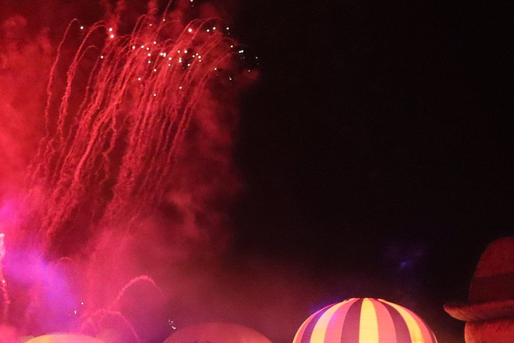 Buy the photo Hot air balloons with fireworks show by Persfotografieholland on canvas, ArtFrame, poster and wallpaper, printed on demand in high quality.