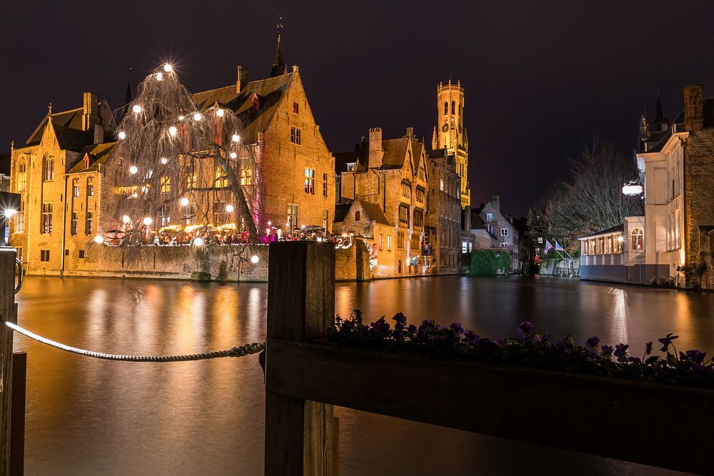 House Perez de Malvenda and Belfry of Bruges during the Christmas period by Marcel Derweduwen