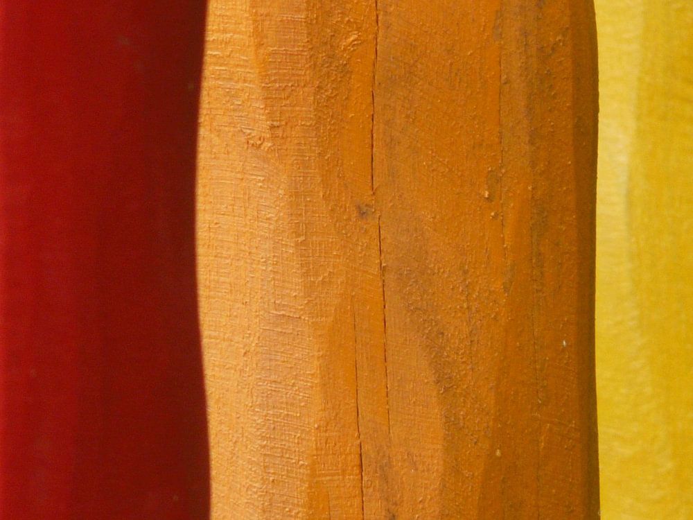 houten palen die in een frisse heldere kleuren zijn geschilder. Als je van strak houd dan is dit een perfect schilderij.