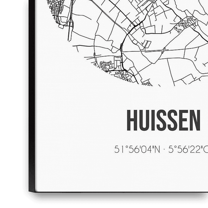 Buy this abstract artwork Huissen (Gelderland) | Map | Black and white by Prints of Place on canvas, ArtFrame, poster and wallpaper, printed on demand in high quality.