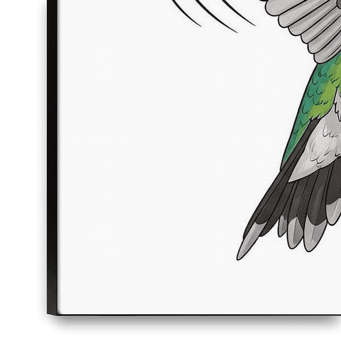This vibrant illustration features a hummingbird gracefully hovering beside a lush arrangement of tropical flowers. The artwork captures the delicate motion of the bird’s wings and the vivid colors of blooming blossoms, creating a sense of harmony between wildlife and nature. With its clean white background and detailed hand-drawn…