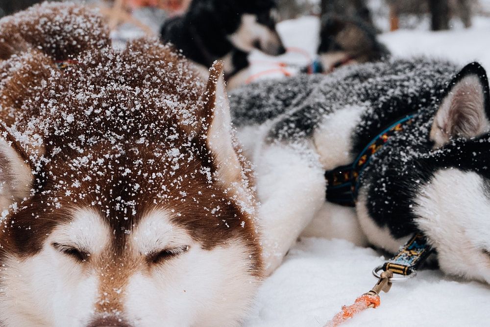 Husky Sled Dogs Sleeping In the Snow by fromkevin