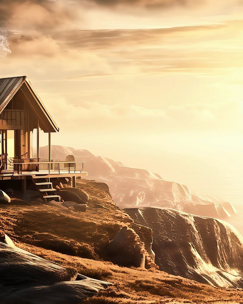 Buy this landscape artwork Hut with a view by fernlichtsicht on canvas, ArtFrame, poster and wallpaper, printed on demand in high quality.