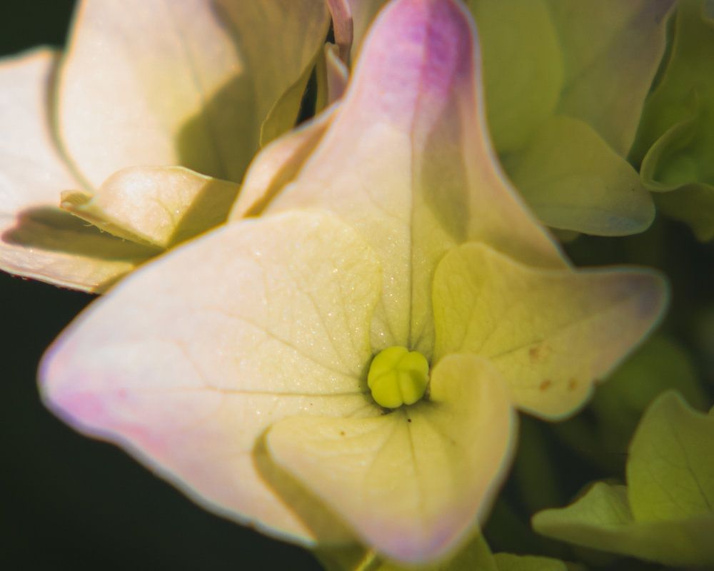 Flowers give colour to life, but they can also show how fast decay can be. Here you see a close-up of a hydrangea that grows and blooms every year in my own little garden. One year there are big full flowers, the next year they are a bit smaller. You can also see the development of the colours beautifully as the flowers grow and open.