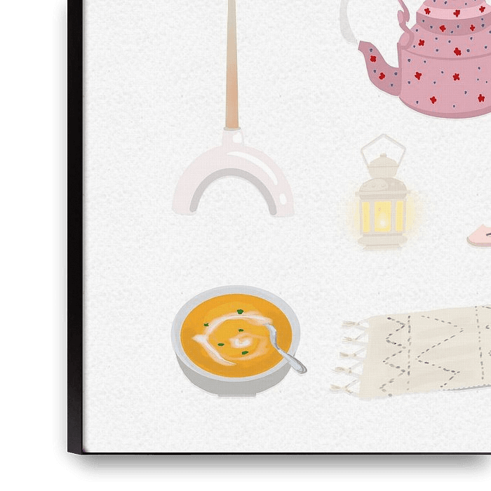 Your chosen art on canvas, stretched in an aluminum frame. Quick and easy to change for a fresh look and exactly as you want it.
