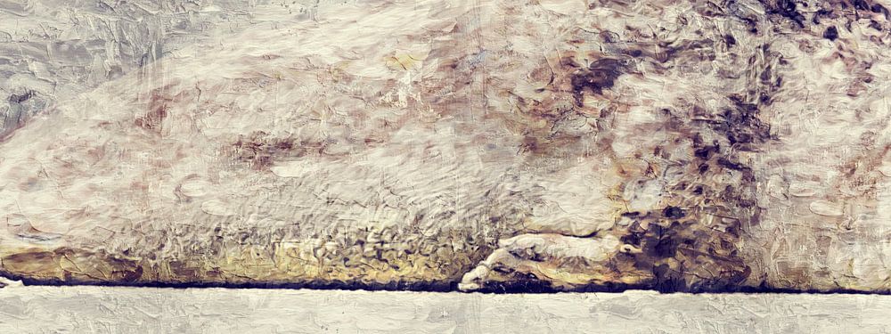 Mixed media oil painting of a seal which is resting on a sandbank in the Oosterschelde (Zeeland).