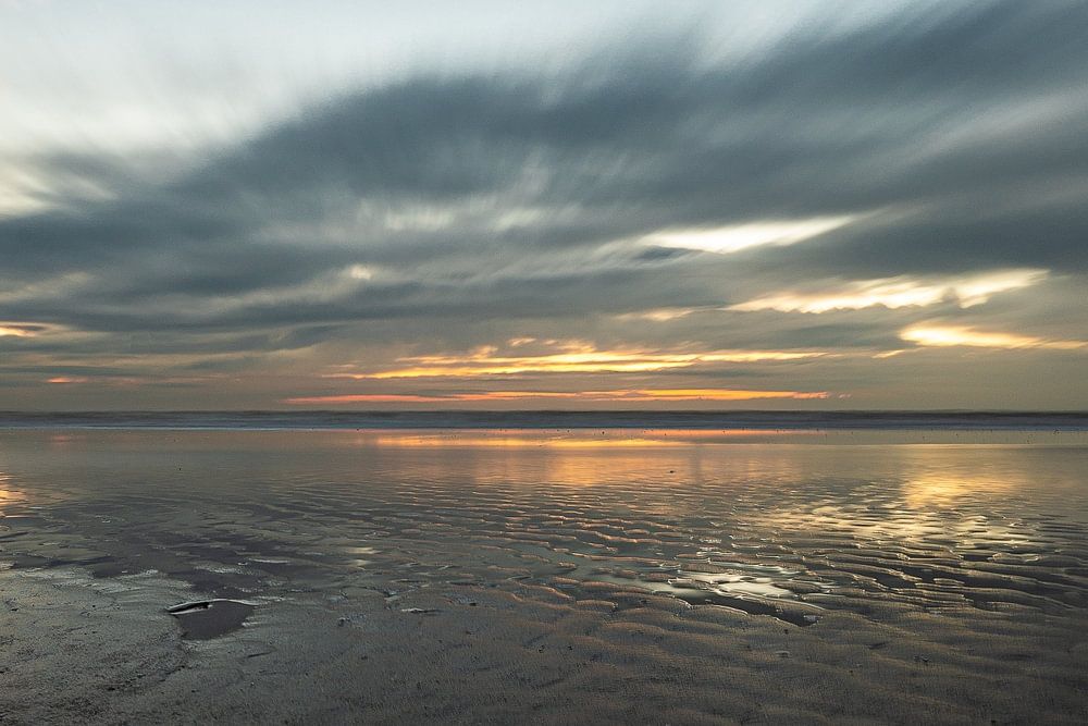 Beautiful sunset on the beach of IJmuiden. On a stormy and sometimes rainy cold evening. I still got a beautiful sky in front of me.