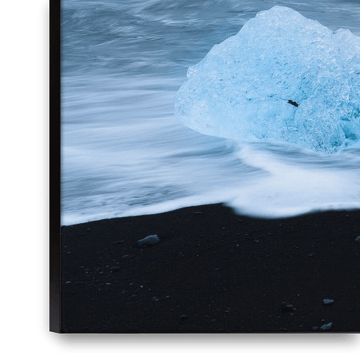 Buy this landscape artwork Ice on black beach by Denis Feiner on canvas, ArtFrame, poster and wallpaper, printed on demand in high quality.