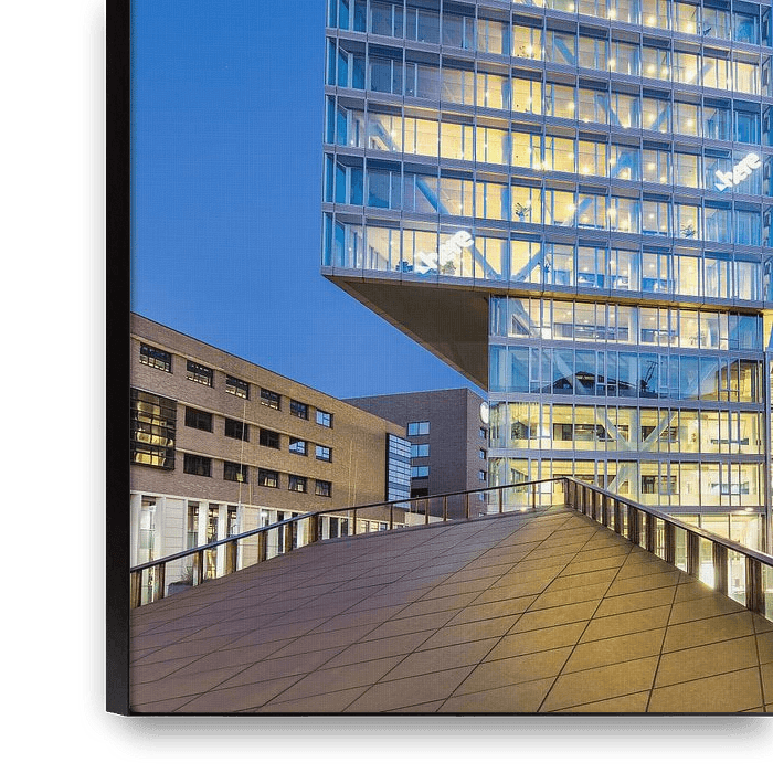 Buy the photo Iconic Kennedy Tower at twilight, Eindhoven city center by Tony Vingerhoets on canvas, ArtFrame, poster and wallpaper, printed on demand in high quality.