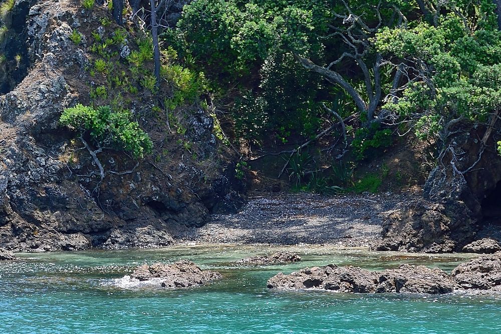 Passing some idyllic spots on Motuarohia Island (Roberton Island) in the Bay of Islands, Northland, New Zealand. The island stretches for two kilometres east-west, with the south coast offering two bays backed by sandy beaches. The north coast is dominated by steep cliffs in the west, rising to 78 metres, and two shallow lagoons in the west.