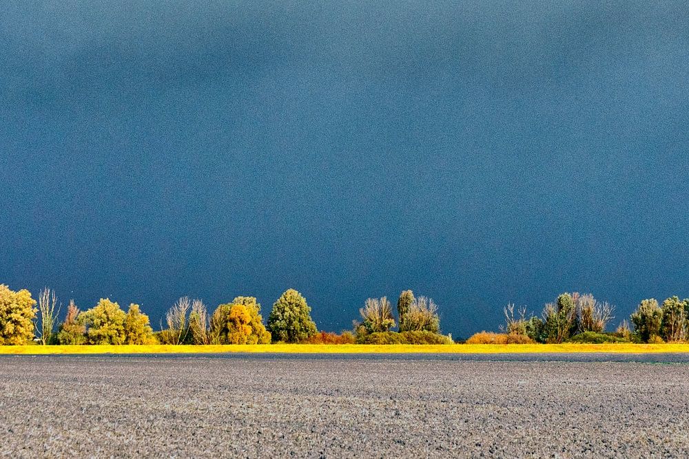 Autumn at the Hamdijk, the connecting road from Klein-Ulsda to Bad Nieuweschans. The harvest is in and the fields have been plowed again. Dark sky towards the north (A7) and sun on the fields. The trees are starting to get their fall colors. Photo was taken during the listening walk Crying Brides.