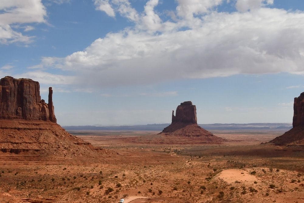 From the visitor center you have the best view of the landscape. The cars are dwarfed by the rock formations ( Mittens ) in the distance. The play of clouds and light make the brown color of the landscape keep changing.