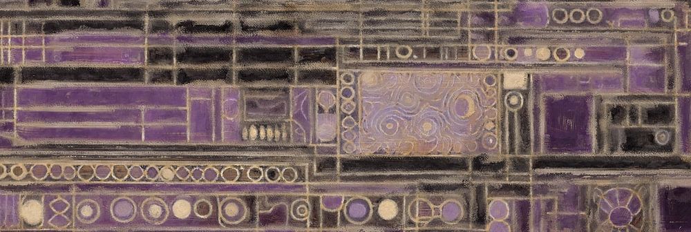 Industrial Labyrinth captures the essence of modern technology and futuristic designs in a complex network of lines and circles. The use of deep purple tones combined with gold accents gives the work a luxurious feel. Influences of art deco are evident in the clean geometric patterns and symmetrical design. This work appeals to lovers of sci-fi and technological innovations, and is a perfect addition to contemporary interiors that could use a touch of futurism and elegance.