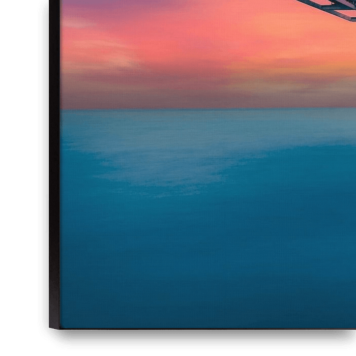 Buy this abstract artwork Industrial pier on the sea at sunset by Stefano Orazzini on canvas, ArtFrame, poster and wallpaper, printed on demand in high quality.