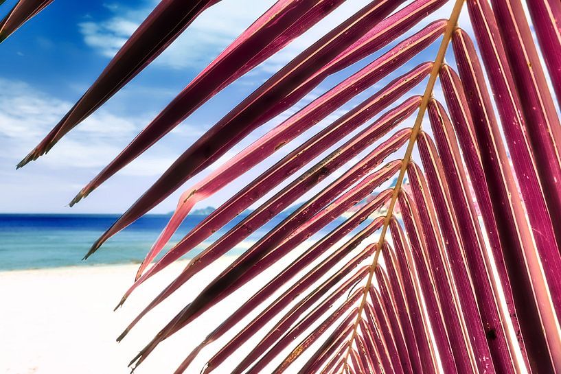 Buy the photo Infrared photo in pink color of palm trees on tropical beach by MPfoto71 on canvas, ArtFrame, poster and wallpaper, printed on demand in high quality.