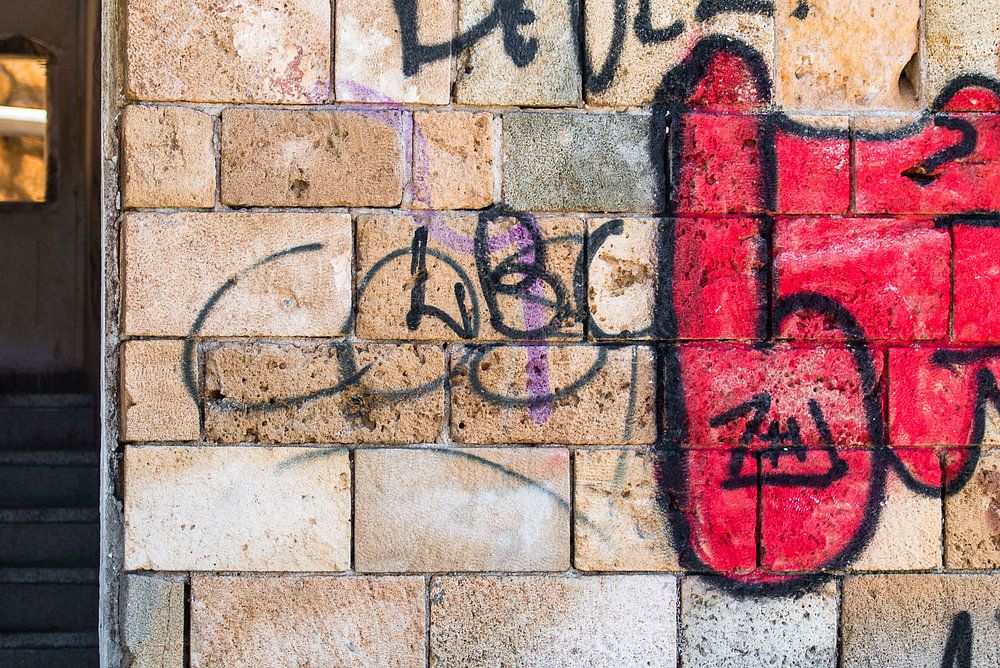 Buy the photo Ingang met graffiti van een verlaten zwembad by Wicek Listwan on canvas, ArtFrame, poster and wallpaper, printed on demand in high quality.