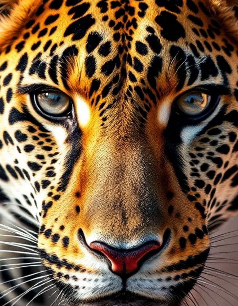 Bring the wild beauty of nature into your home with this impressive close-up of a leopard. The majestic animal's intense gaze, captured in high detail, exudes power and mystery. With its vibrant colours and sharp patterns, this print creates a visual impact that is both soothing and powerful. Perfect for wildlife lovers or as a statement piece in a modern interior.