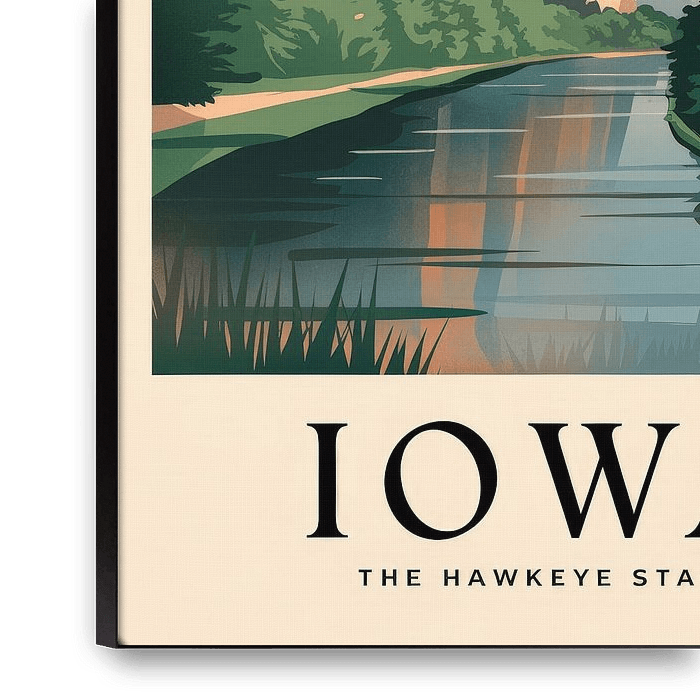 Buy this landscape artwork Iowa Vintage Travel Poster by Poster Art Shop on canvas, ArtFrame, poster and wallpaper, printed on demand in high quality.