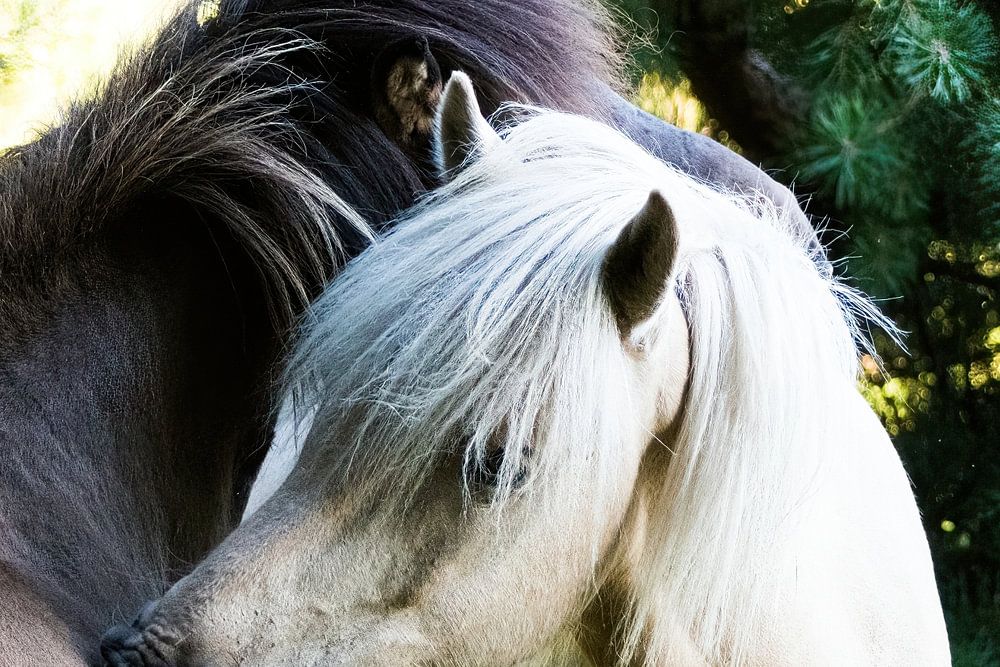 On a quiet spot in the woods stood these two wild horses. Was there love in the air?