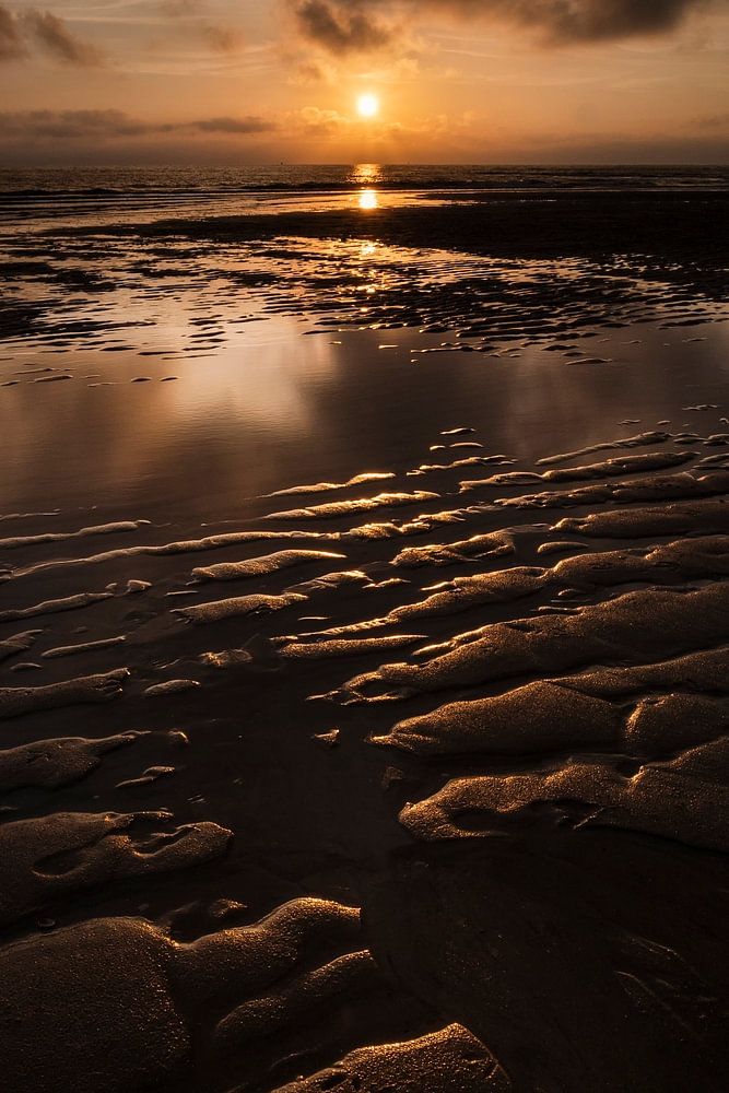 This was shortly before the sun went down. What I really like here is the reflection of the setting sun in the sand ridges in the foreground. A lovely moment of enjoyment!