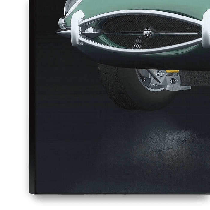 Buy this digital art artwork Jaguar E Type three-quarter view by Jan Keteleer as a reproduction on canvas, ArtFrame, poster and wallpaper, printed on demand in high quality.