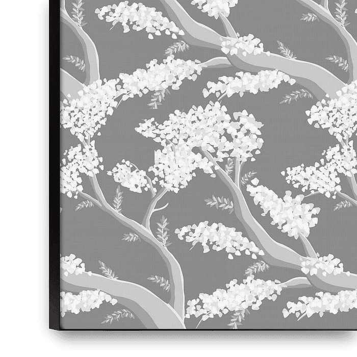 This artwork shows the Sakura (Japanese blossom) in black and white. The flowers bloom in the spring and show beautiful pink flowers.