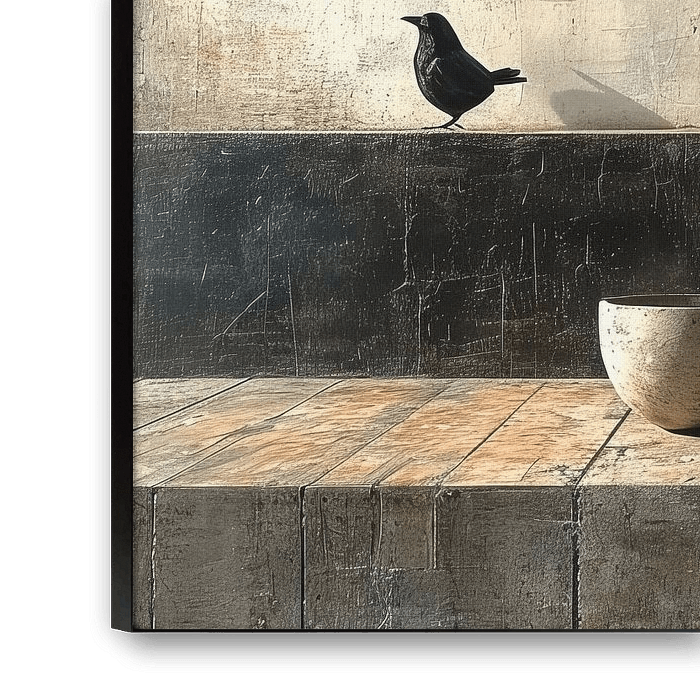 Japandi Shadow Play - Japandi minimalist still life with bird