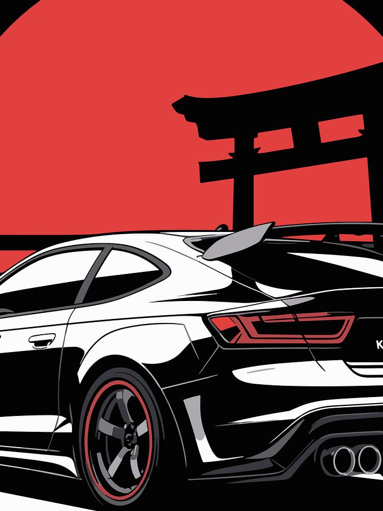 Buy this illustration Japanese Car Torri Gate Red Sun by Vicky Hanggara on canvas, ArtFrame, poster and wallpaper, printed on demand in high quality.