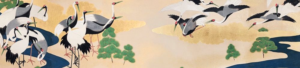 Japanese cranes and pines, Yamamoto Sodō by Masterful Masters