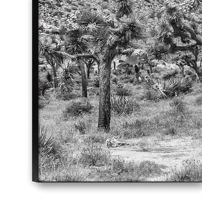 Joshua Tree National Park is located in southeastern California. The park is named after the Joshua palm lilies, also known as Joshua Trees, which belong to the Yucca family. They characterize the landscape. Beautiful panoramic view from the heart of Joshua Tree National Park.