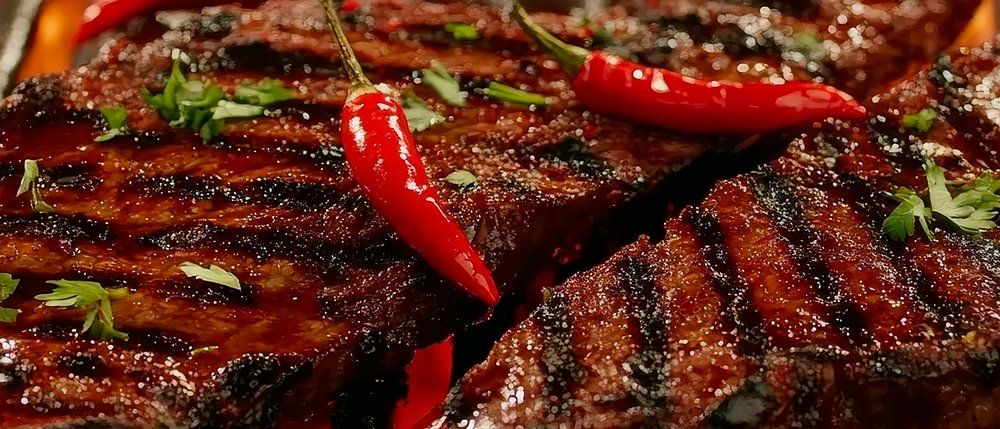A delicious feast unfolds in a dance of flames and succulent grilled meat, adorned with bright chilli peppers and fresh herbs. The tantalising aromas promise an unforgettable taste experience. This pictorial masterpiece is perfect for the kitchen or dining room, where it will whet the appetite and encourage socialising.