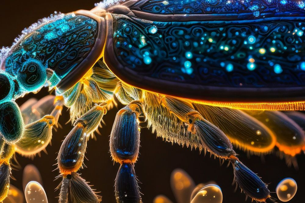 A glowing "macro" of a beetle created with an AI and Photoshop.