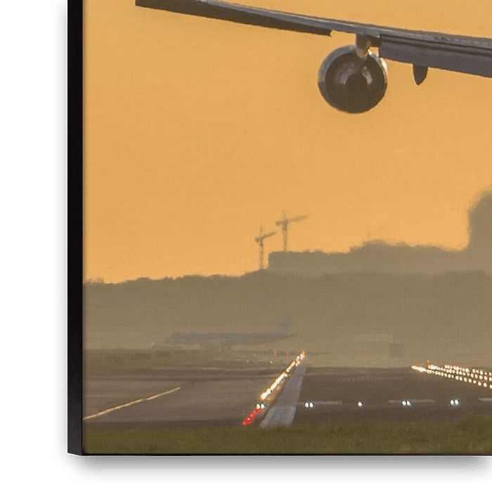 Buy this landscape artwork KLM 747 on approach by Dennis Dieleman on canvas, ArtFrame, poster and wallpaper, printed on demand in high quality.