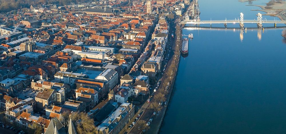 Kampen city view at the river IJssel during a cold winter sunris by Sjoerd van der Wal Photography