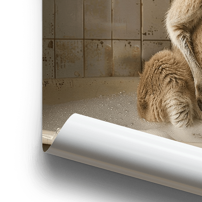 This original bathroom mural captures the moment a jumping kangaroo lands in its bath, adding a special touch to your bathroom. The black and white photography highlights the dynamism of the image and emphasises the details of the scene, while making a charming and unique addition to your bathroom decor. Perfect for brightening up your…
