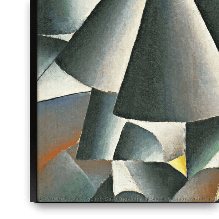 Buy this abstract artwork Kazimir Malevitch, woman with pails, dynamic arrangement by Atelier Liesjes on canvas, ArtFrame, poster and wallpaper, printed on demand in high quality.
