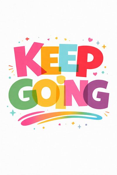 This vibrant typography print delivers a powerful motivational message through bold colors and playful letterforms. “Keep Going” inspires perseverance and determination, making it ideal for anyone facing challenges or working toward goals. A perfect statement piece to energize interiors with optimism and forward momentum.