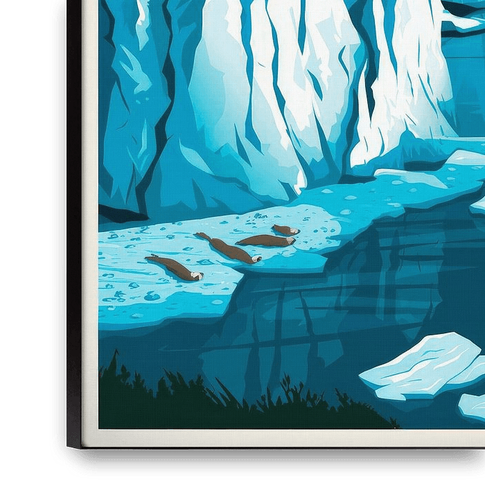 Majestic ice peaks and deep blue waters invite you to dream. The harmonious interplay of nature and colours tells stories of adventure and exploration. This artwork is a perfect addition to the living room, where it inspires the mind to relax and long for the fjords of Alaska.