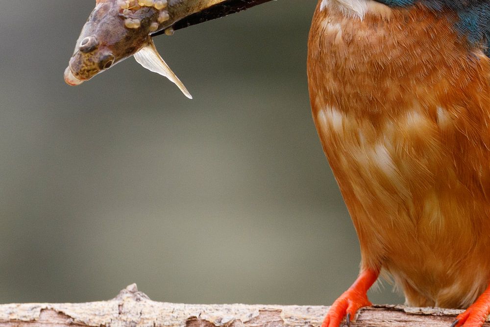 Kingfisher male with fish, a sturgeon a rare fish in Dutch waters