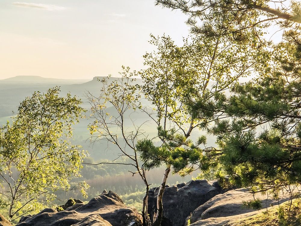 And suddenly you step out of the forest into the open and have such a great view in front of you. A rock terrace with a wonderful 180 degree panorama, that's the Kipphornaussicht. Bohemian and Saxon Switzerland merge from up here, it's all one wide green band with the Elbe as a link. Thank you beautiful Elbe Sandstone Mountains for this unique place.