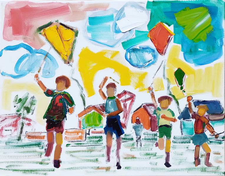 Buy this abstract artwork Kite party by Simon Borst on canvas, ArtFrame, poster and wallpaper, printed on demand in high quality.